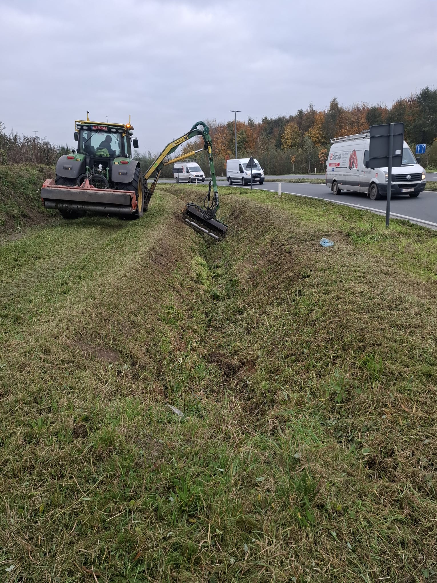 Snoei-, maai- en veegwerkenknotten bomen, scheren houtkanten, bermen maaien en straatveegwerken Gratis offerteSnoei-, maai- en veegwerkenSnoeien met hydraulische snoeischaar op graafmachine (ideaal om tronken te snoeien) en hydraulische arm op tractor met cirkelzaag om hagen te snoeienVerhakselen van hout met jumbohakselaarMaaien met en zonder opvangsysteem langs wegen en waterlopen.Maaien van taluds van waterlopen en dijkenMaaien met maaiboot in vijvers en waterlopen voor moeilijk bereikbare plaatsenVeegwerken met en zonder opzuig om onkruid op milieuvriendelijke wijze te bestrijden